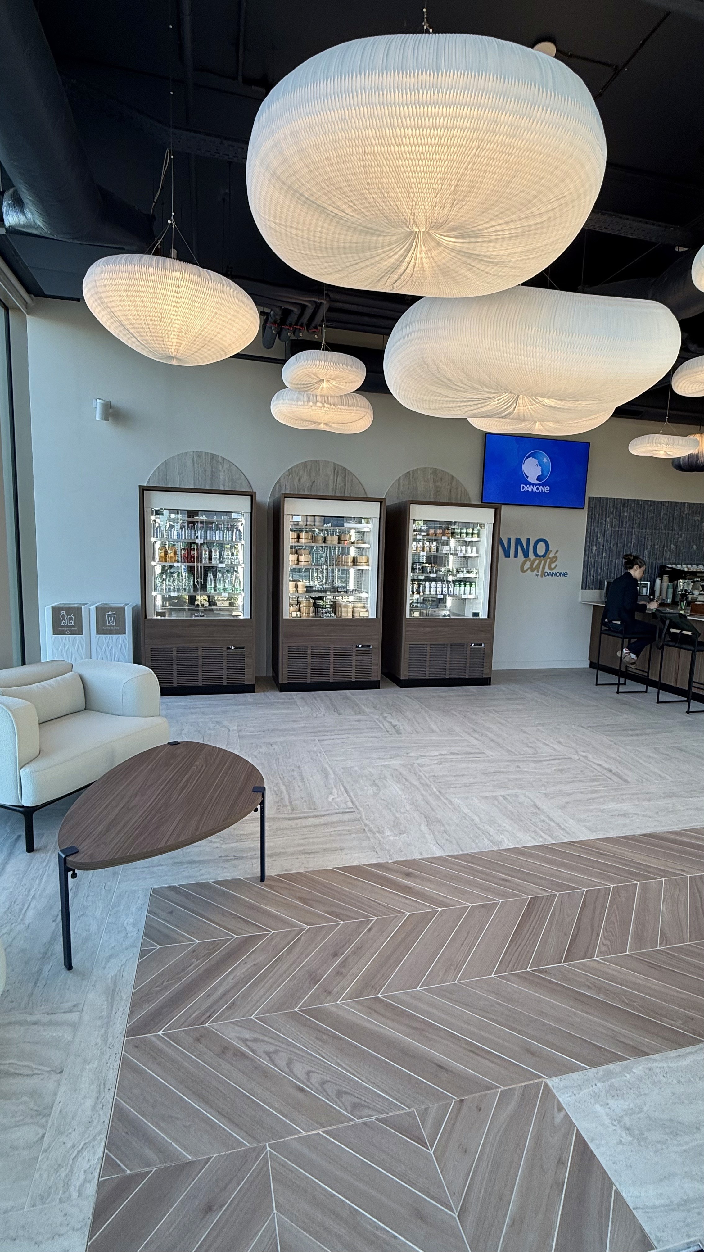 InnoKFE by Danone est un lieu de rencontre et de créativité au cœur du plateau de Saclay. Le Studio Carbone a conçu cet espace pour offrir un environnement à la fois convivial et inspirant, en harmonie avec l’esprit du groupe Danone.