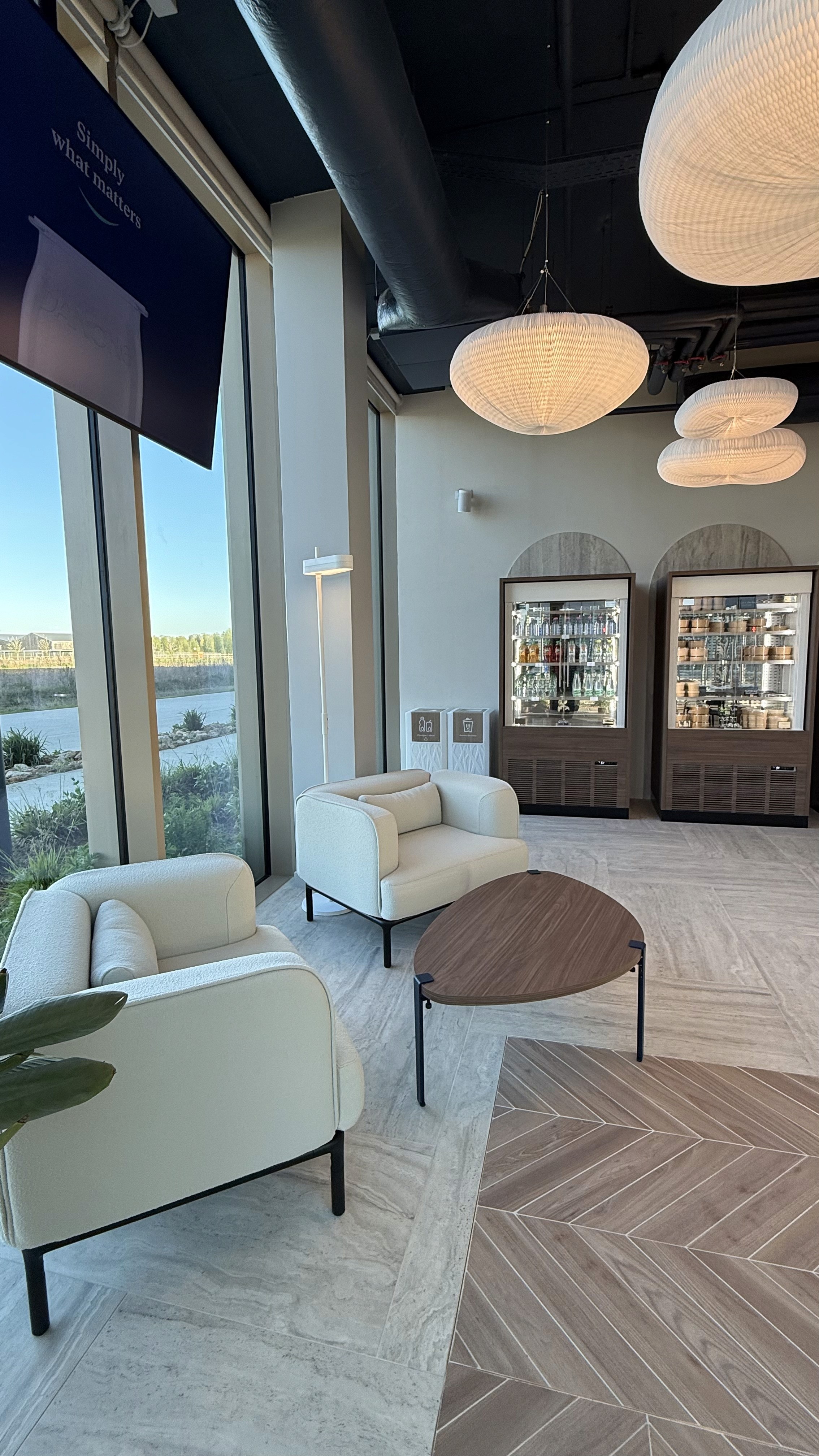 L’eau, source d’inspiration du projet, s’est déclinée dans ses trois états – solide, liquide et gazeux – pour façonner un univers fluide et apaisant.