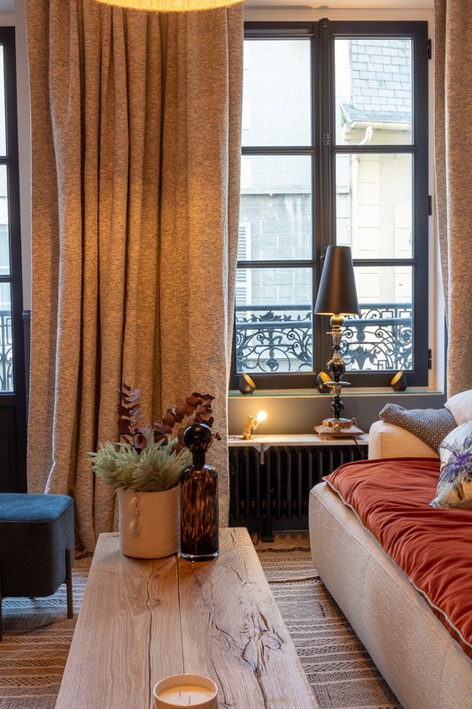 Deux appartements mitoyens nichés en coeur de ville et dédiés à de la location saisonnière que les propriétaires voulaient à la fois chic et cosy, intemporel mais imprégnés de Normandie.